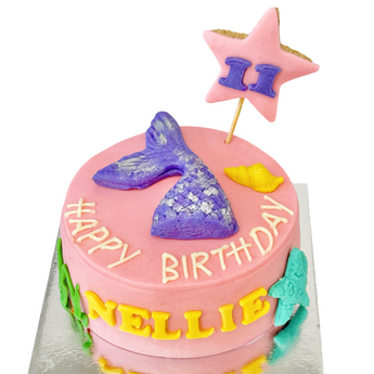 Topped with shimmering scales and whimsical details, it's designed to let your little mermaid pup feel like royalty. Whether it's a birthday celebration or just a special "tail-wagging" moment, this cake brings the fun and fantasy straight to your furry friend.